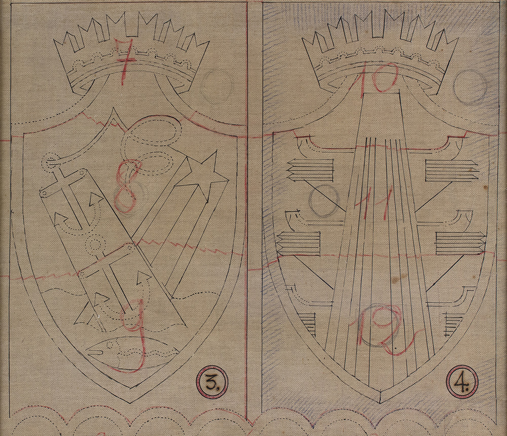 FORTUNATO DEPERO Stemmi Italici, 1940-41 Matita e china su carta applicata su tela, 28,4 x 33,5 cm Etichetta e timbro al retro della Galleria Arte Viva di Vittoria