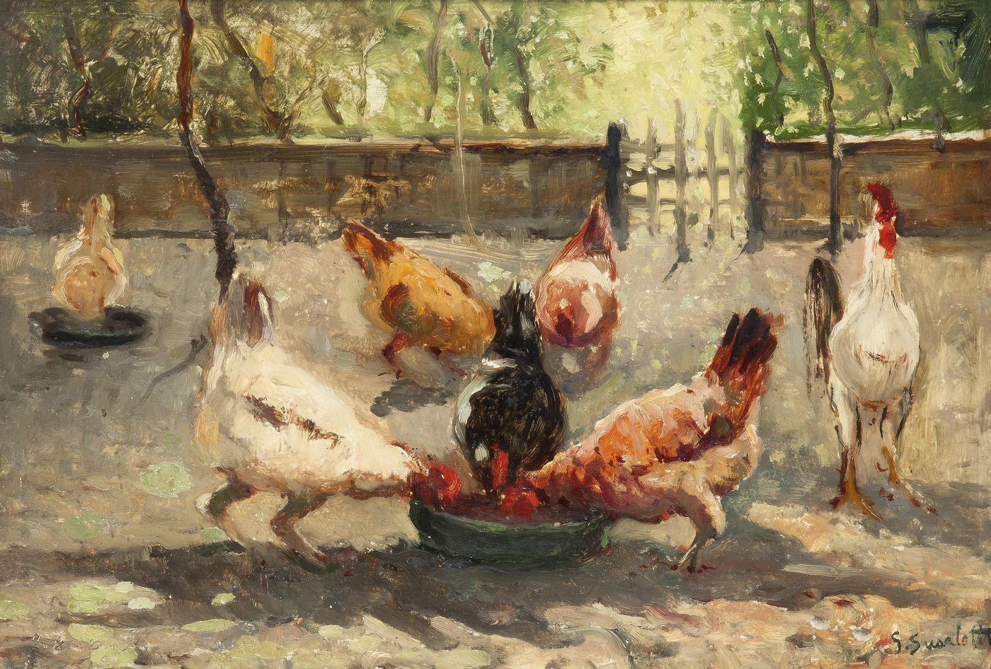 GUARLOTTI GIOVANNI Galliate (NO) 1869 - 1954 Torino "Galline" 35x48,5 olio su...