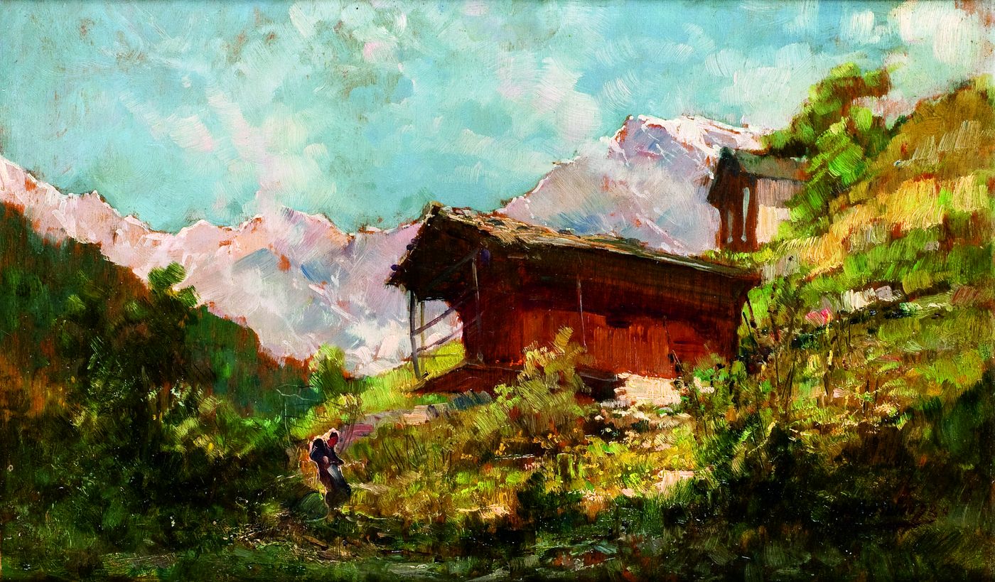 GHEDUZZI CESARE Crespellano (BO) 1894 - 1944 Torino "Valtournenche" 26,5 x43,5 olio su tavoletta Opera firmata in basso a destra e localizzata al retro Parere verbale favorevole dell'Arch. Ugo Gheduzzi