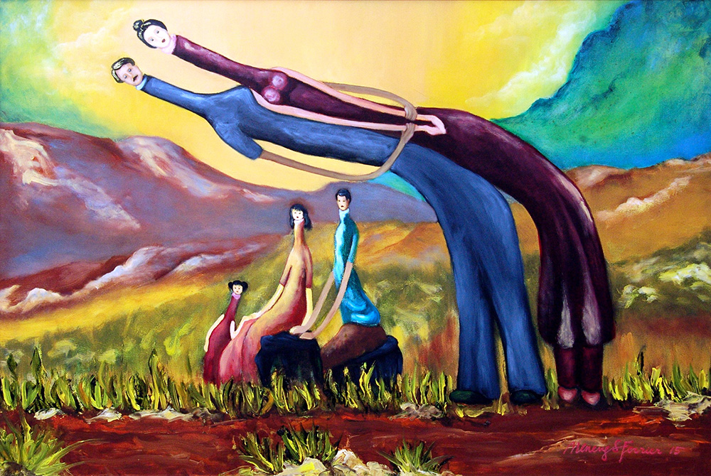Neneng Sia Ferrier 1953, Jakarta - [Indonesia] Happy family olio su tela stampata 80x120 cm 2015 firma dell’artista in basso a destra e sul retro; opera con cornice certificato di provenienza garantita Picenum