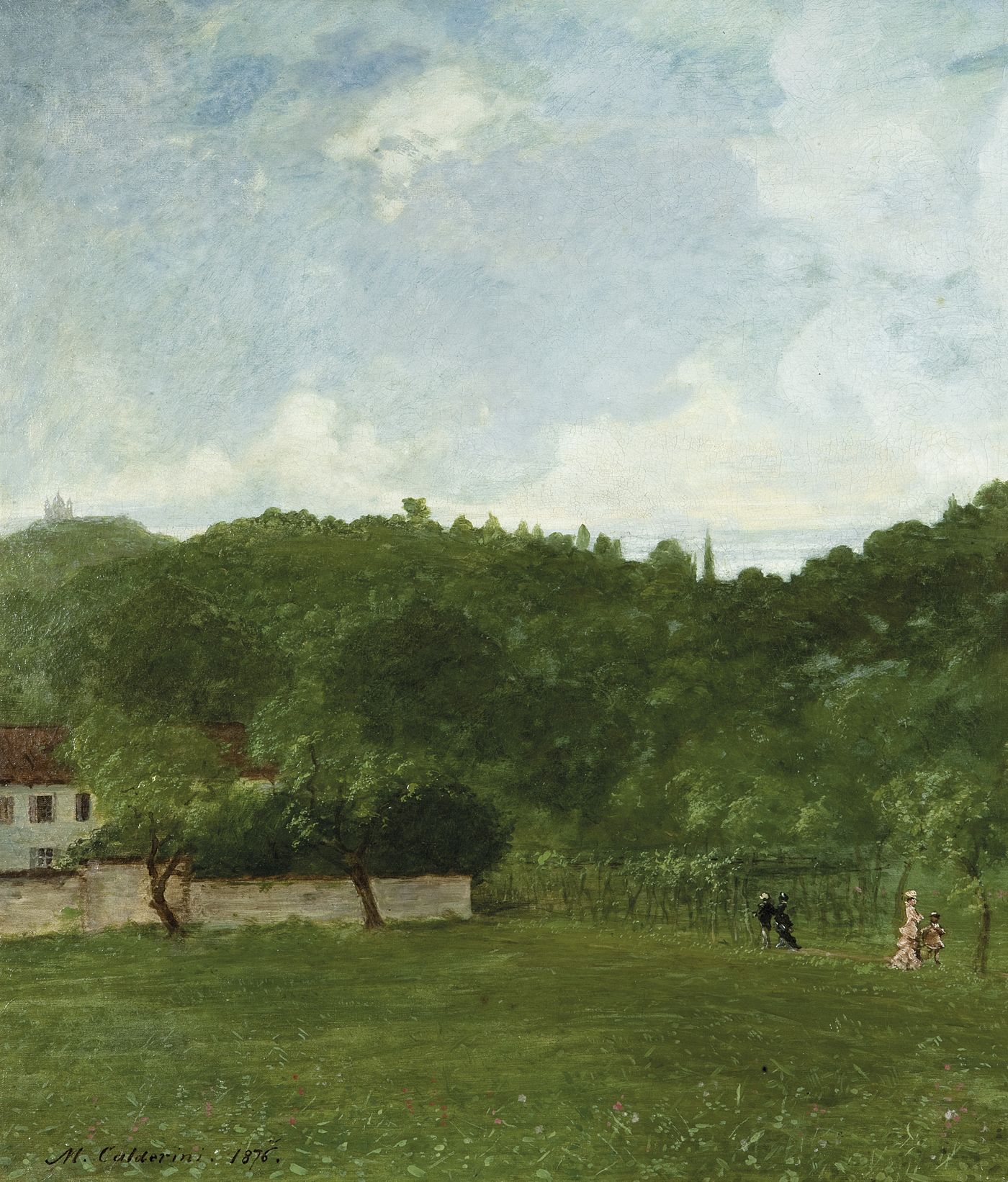 CALDERINI MARCO Torino 1850 - 1941 "A passeggio sulla collina torinese" 1876 68x58 olio su tela Opera firmata e datata in basso a sinistra Già Galleria Fogliato, Torino (etichetta al retro)