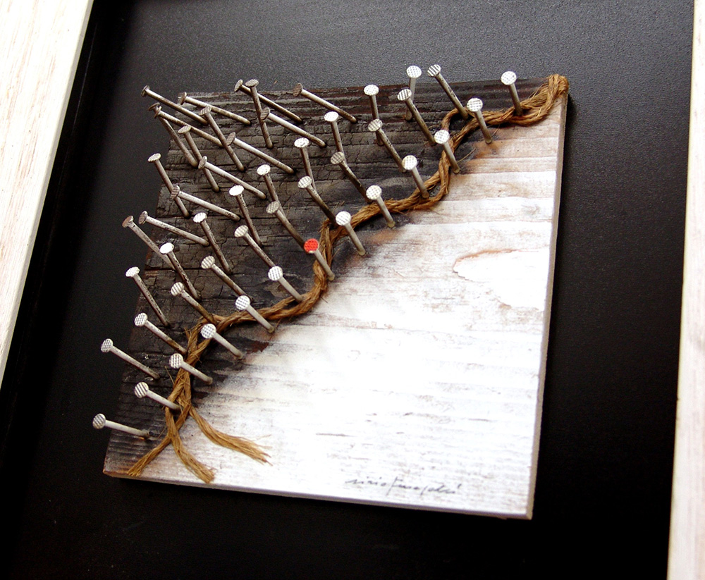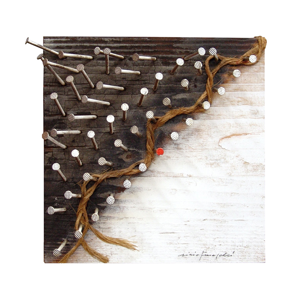 Sirio Fumagalli 1957, Roma (Rm) - [Italia] Struttura 49 composizione polimaterica su tavola 16x16 cm firma dell’artista in basso a destra dichiarazione di autenticità su fotografia