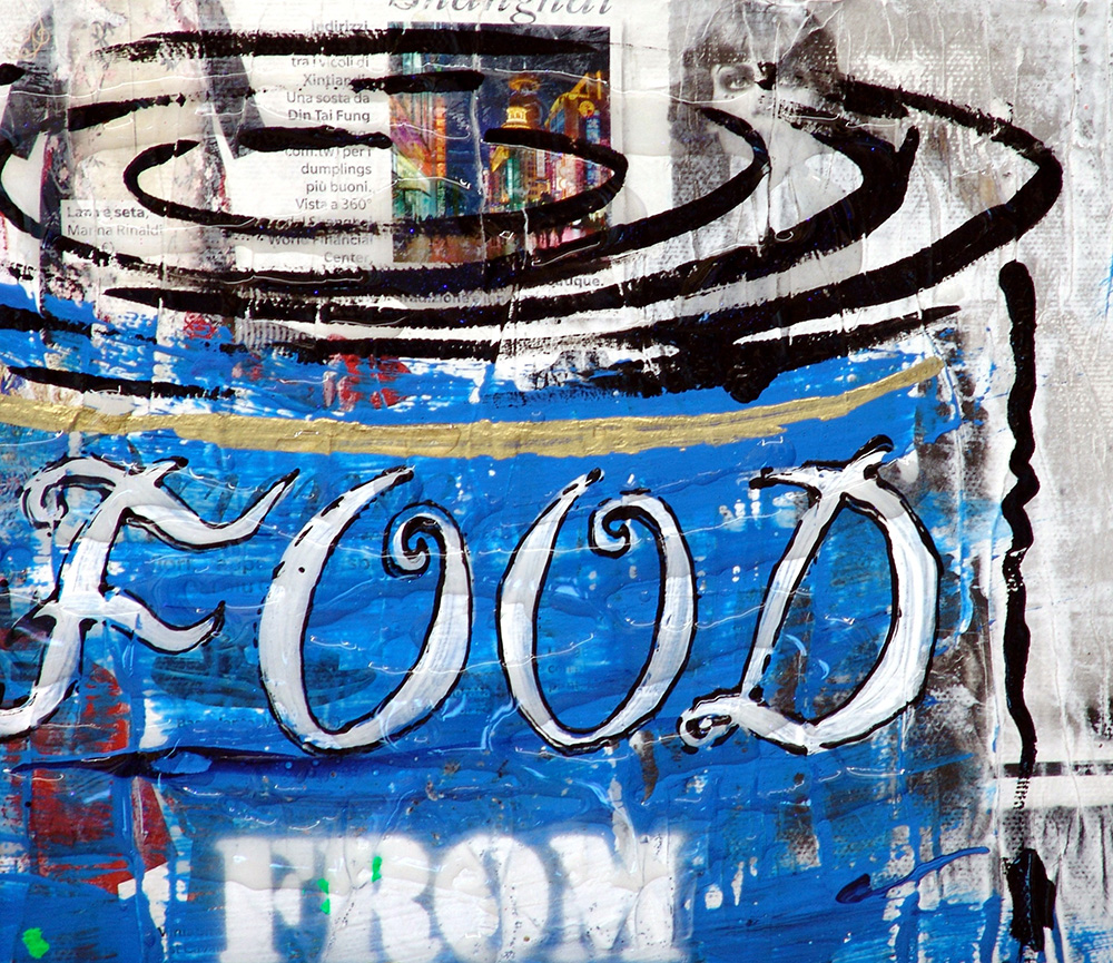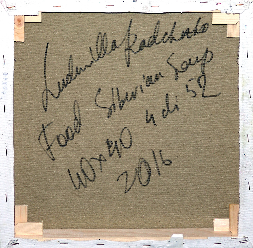 Ludmilla Radchenko 1978, Omsk - [Russia] Siberian soup blue tecnica mista su tela 40x40 cm 2016 firma dell’artista sul retro certificato di autenticità dell’artista