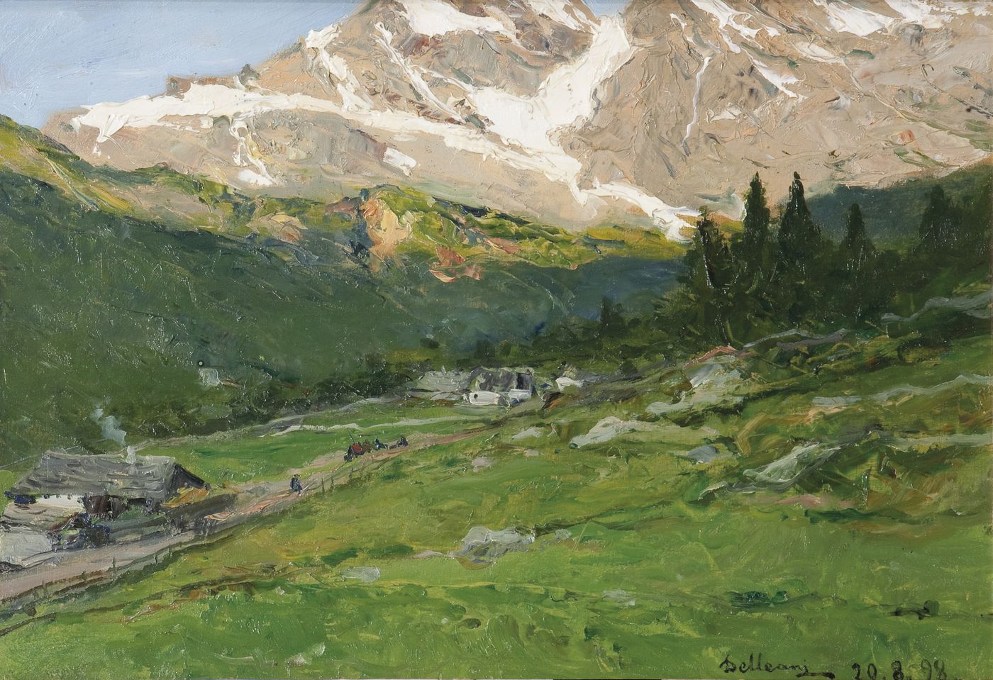DELLEANI LORENZO Pollone (BI) 1840 - 1908 Torino "Estate a Ceresole Reale" 20.8.98 30,5x45 olio su tavoletta Opera firmata e datata in basso a destra Già Galleria Fogliato, Torino (etichetta al retro)