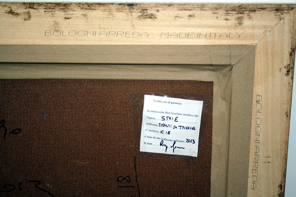 Graziano Rey 1953, Torino (To) - [Italia] Strie cementite e smalti su tavola 61x90 cm 2013 firma dell'artista in basso a destra; opera con cornice certificato di autenticità firmato dall’artista