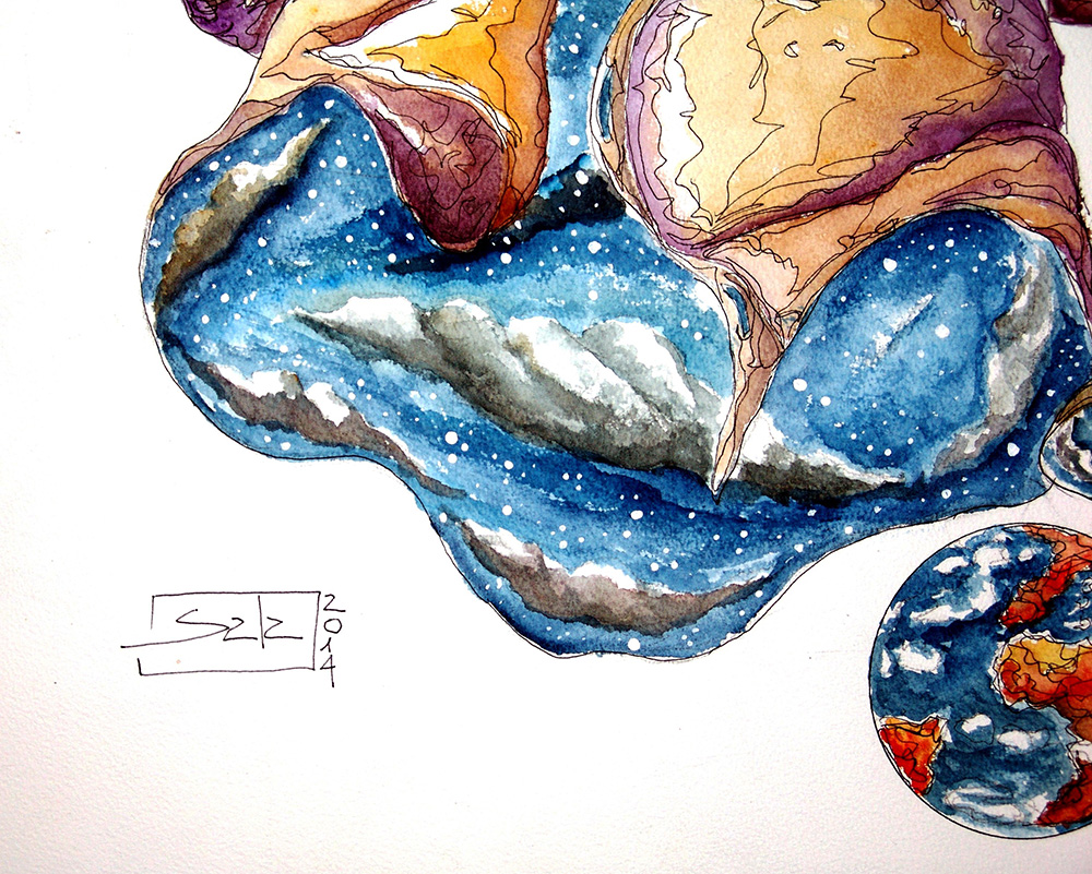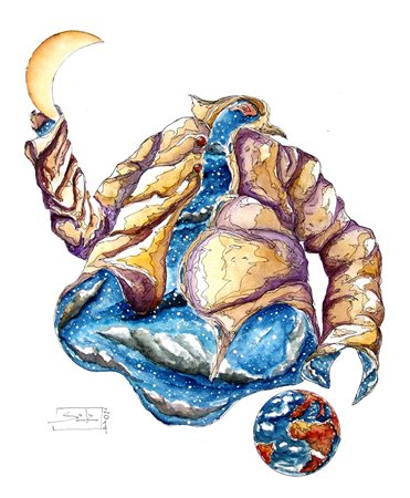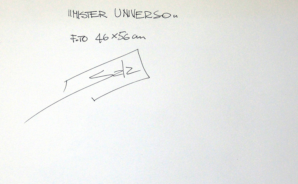 Alessandro Sala 1958, Genova (Ge) - [Italia] Mister Universo acquerello su carta 56x46 cm 2014 firma dell’artista in basso a sinistra e sul retro certificato di provenienza garantita Picenum