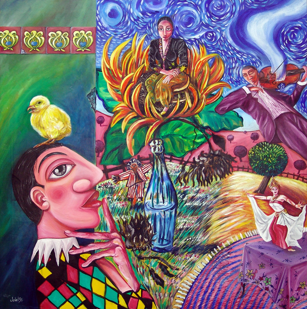 Abu Jalal Sarimon 1964, Singapore - [Repubblica di Singapore] Home sweet home acrilico su tela 105x105 cm 1994 firma dell’artista in basso a sinistra; opera con cornice certificato di provenienza garantita Picenum