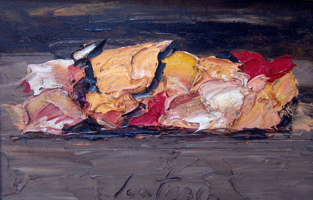 Sergio Scatizzi 1918, Gragnano (Lu) - 2009, Firenze (Fi) - [Italia] senza titolo olio su tavola 20x30 cm firma dell’artista in basso al centro e sul retro; opera con cornice dichiarazione di autenticità su fotografia firmata dall’artista