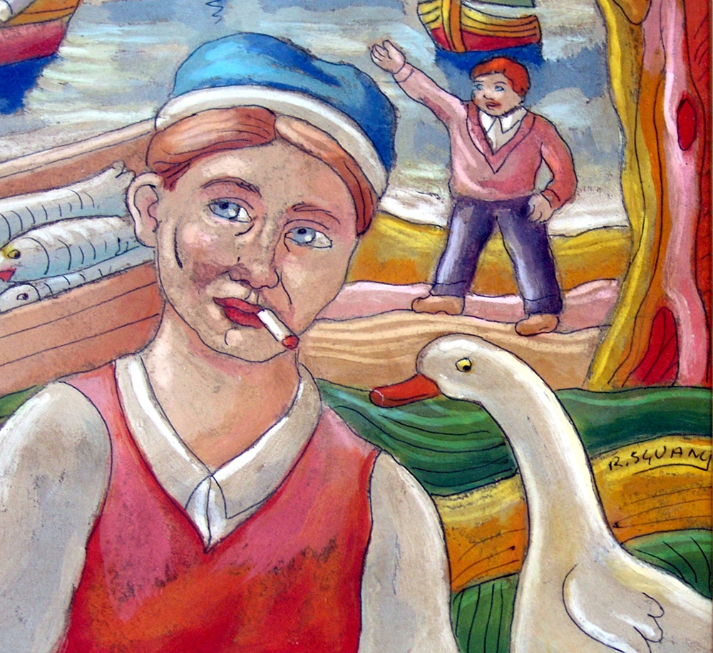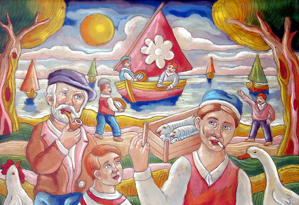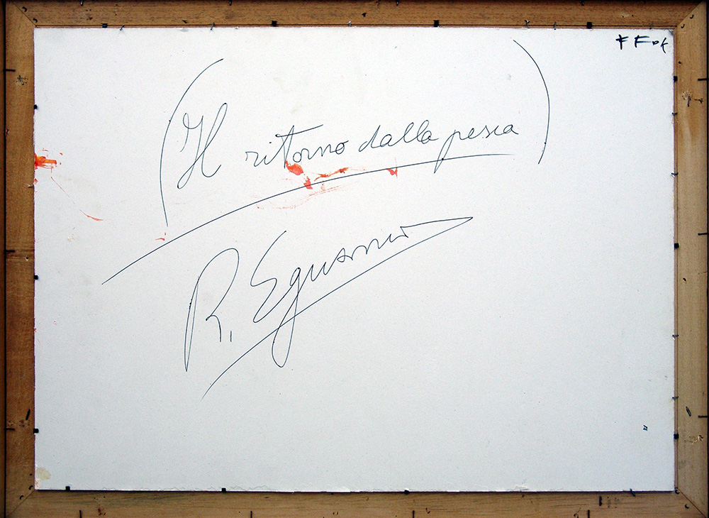 Roberto Sguanci 1948, Firenze (Fi) - [Italia] Il ritorno dalla pesca olio su cartone 50x70 cm firma dell'artista in basso a destra e sul retro; opera con cornice certificato di provenienza garantita Picenum