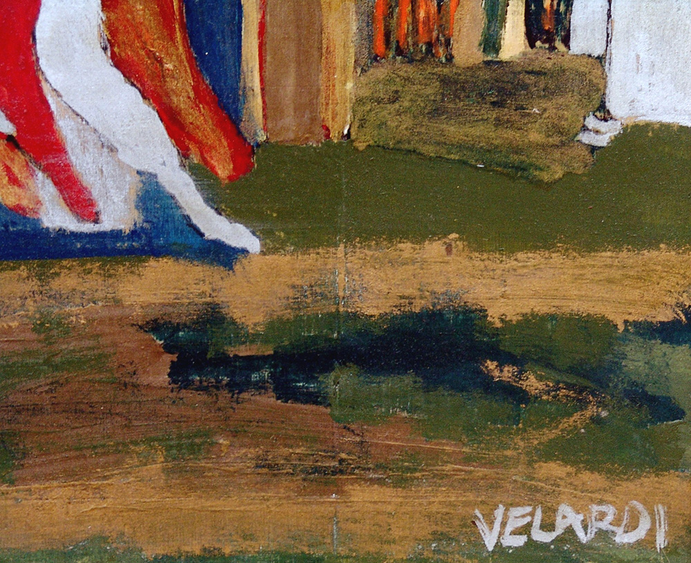 Rosario Velardi 1943, Palermo (Pa) - [Italia] Medioevalia Tabula XXXXIII smalti su tavola 40x30 cm 1997 firma dell'artista in basso a destra; opera con cornice certificato di provenienza "Galleria d'Arte 1631"