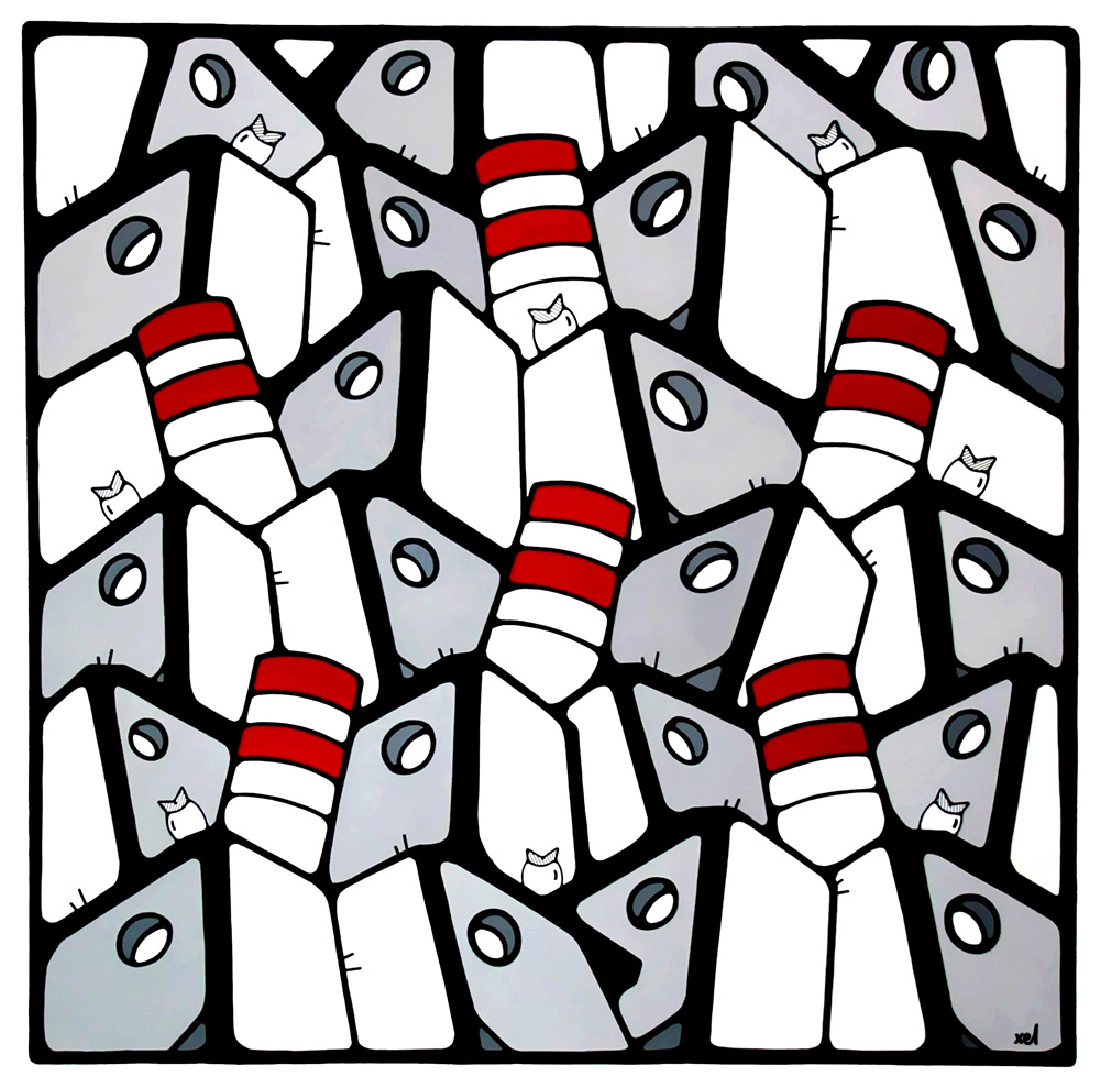 Xel 1975, Torino (To) - [Italia] Sleeping city acrilico su tela 100x100 cm 2014 firma dell’artista in basso a destra e sul retro certificato di autenticità dell'artista