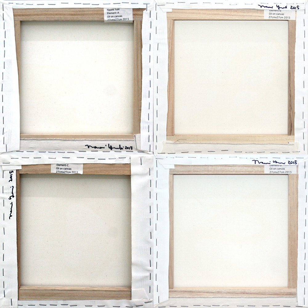 Naomi Yuki 1970, Osaka - [Giappone] Elements (quadrittico) olio su tela 4 pezzi di f.to 27x27 cm cad. 2015 firma dell’artista sul retro certificato di autenticità firmato dall'artista