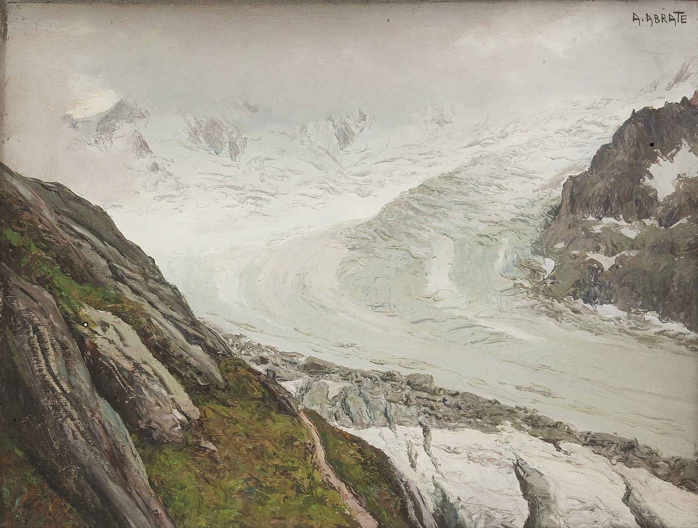 ABRATE ANGELO Torino 1900 - 1985 Sallanches "Ghiacciaio" 34x43,8 olio su tavoletta Opera firmata in alto a destra