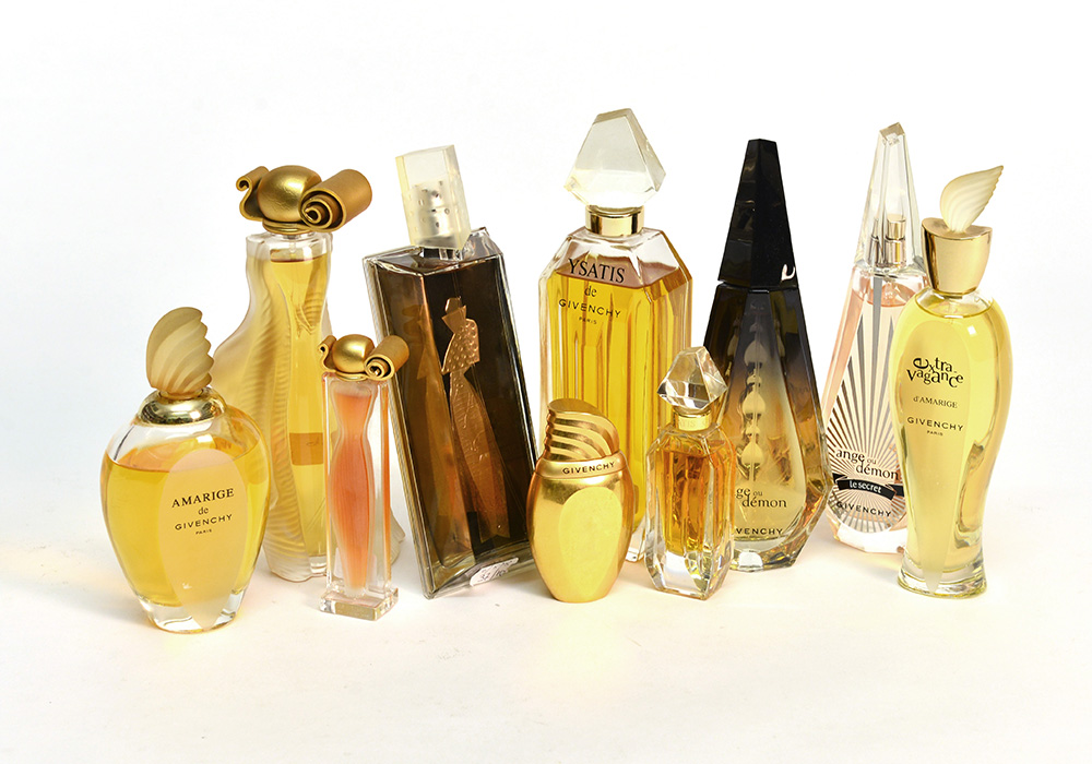 GIVENCHY ñ Lotto di nove bottiglie di profumo e eau de toilette di diverse epoche, dimensioni e fatture