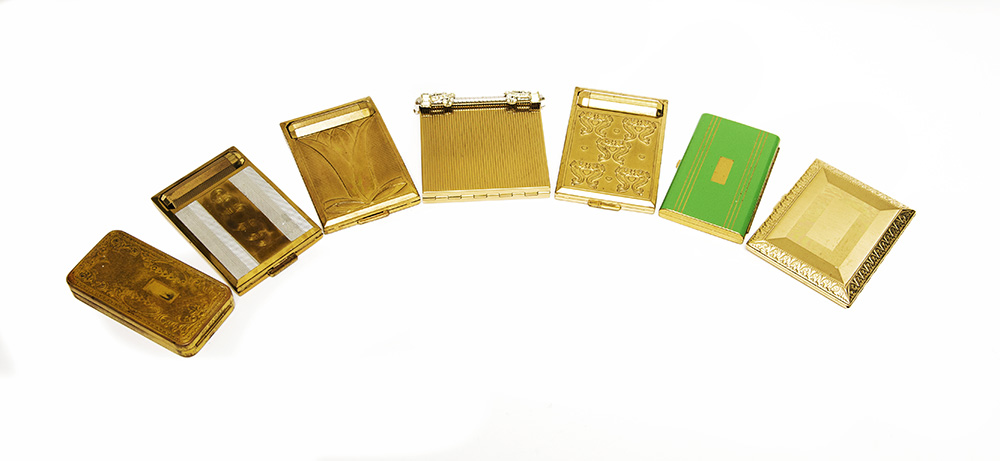 RICHARD HUDNUT Lotto di sette fra vanity cases e portacipria di cui un Du Barry, di forme, dimensioni e decorazioni diverse (lievi difetti) RICHARD HUDNUT Lotto di sette fra vanity cases e portacipria di cui un Du Barry, di forme, dimensioni e decorazioni diverse (lievi difetti) Lot comprising seven compacts one of which Du Barry (minor defects)