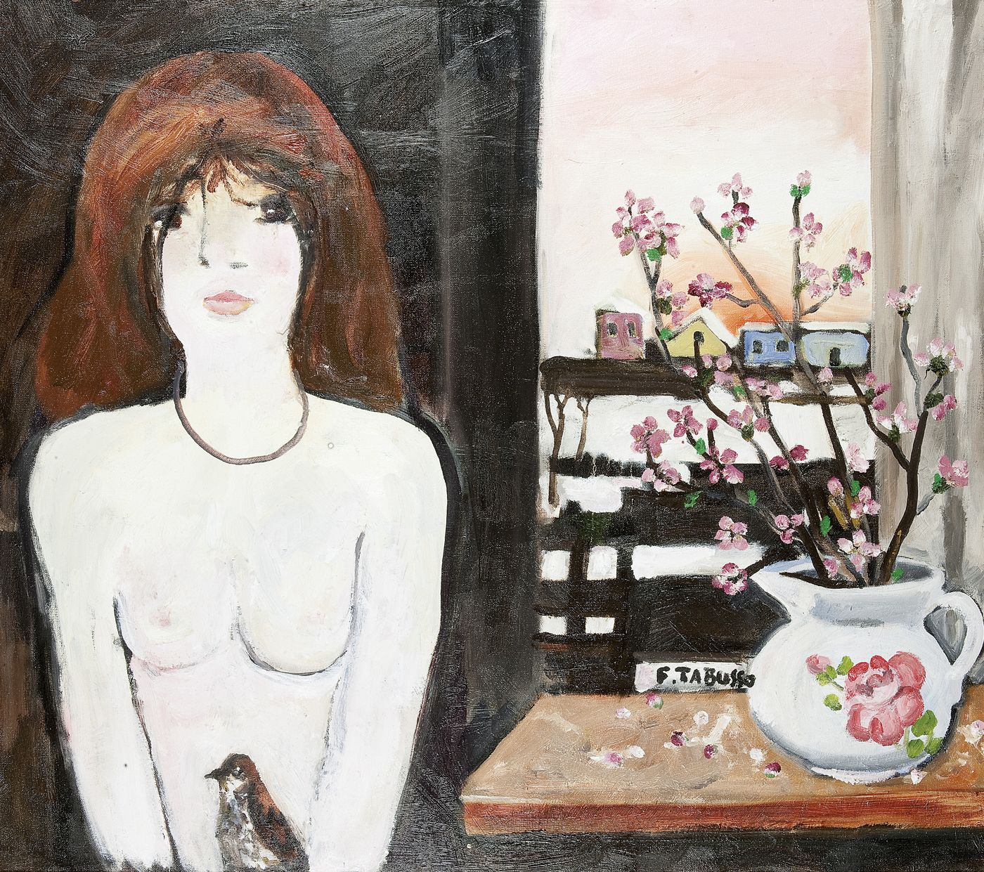 TABUSSO FRANCESCO Sesto San Giovanni (MI) 1930-2012 Torino "Modella vicino alla finestra" 81x90 olio su tela Opera firmata in basso a destra
