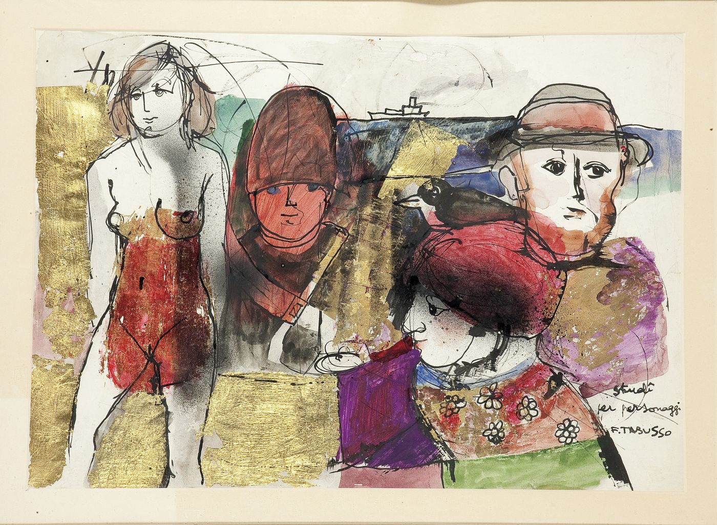 TABUSSO FRANCESCO Sesto San Giovanni (MI) 1930-2012 Torino "Studi per personaggi" 50x70 tecnica mista su carta Opera firmata ed intitolata in basso a destra