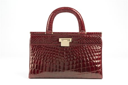 Borsa in coccodrillo bordeaux, con doppio manico chiusure e rifiniture color...