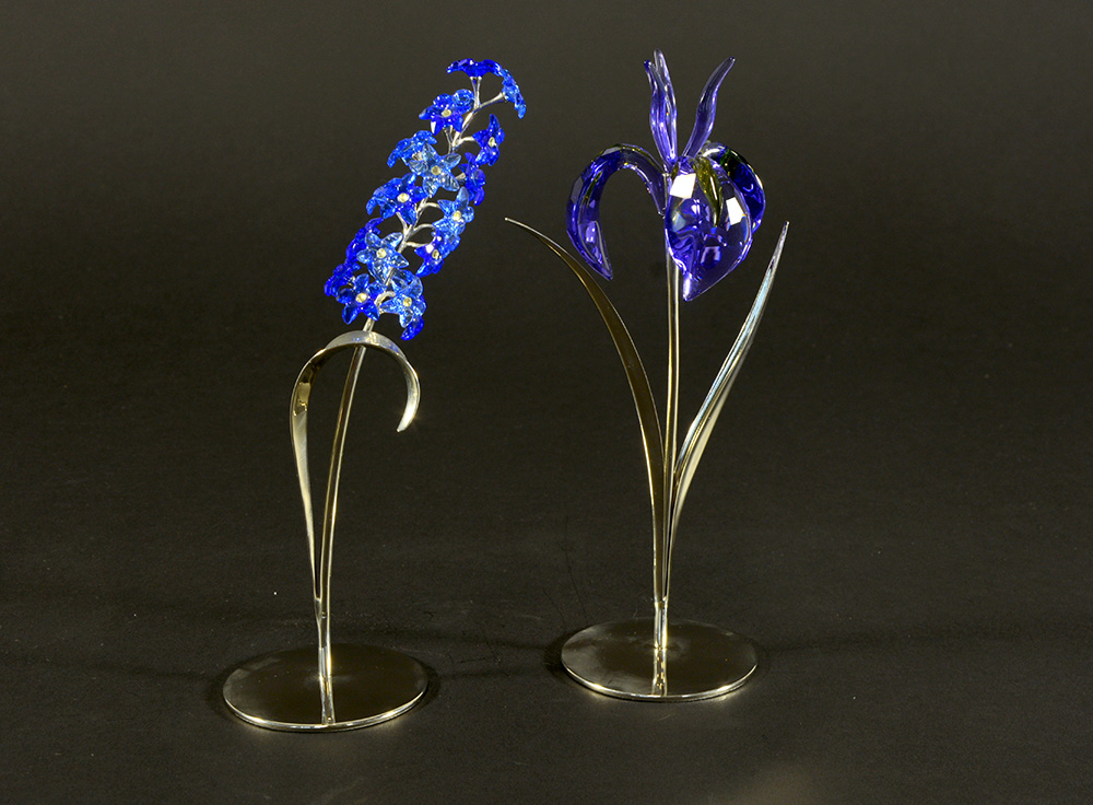 SWAROVSKI, lotto di due fiori con petali in cristallo, foglie e basamento in...