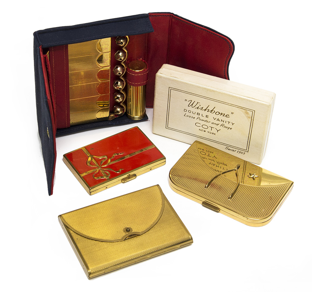 COTY Lotto di un portacipria, due vanity cases e un vanity set ìJingle Bellsî in custodia originale (lievi difetti) COTY Lotto di un portacipria, due vanity cases e un vanity set ìJingle Bellsî in custodia originale (lievi difetti) Lot comprising three compacts and a "Jingle Bells" presentation case (minor defects)