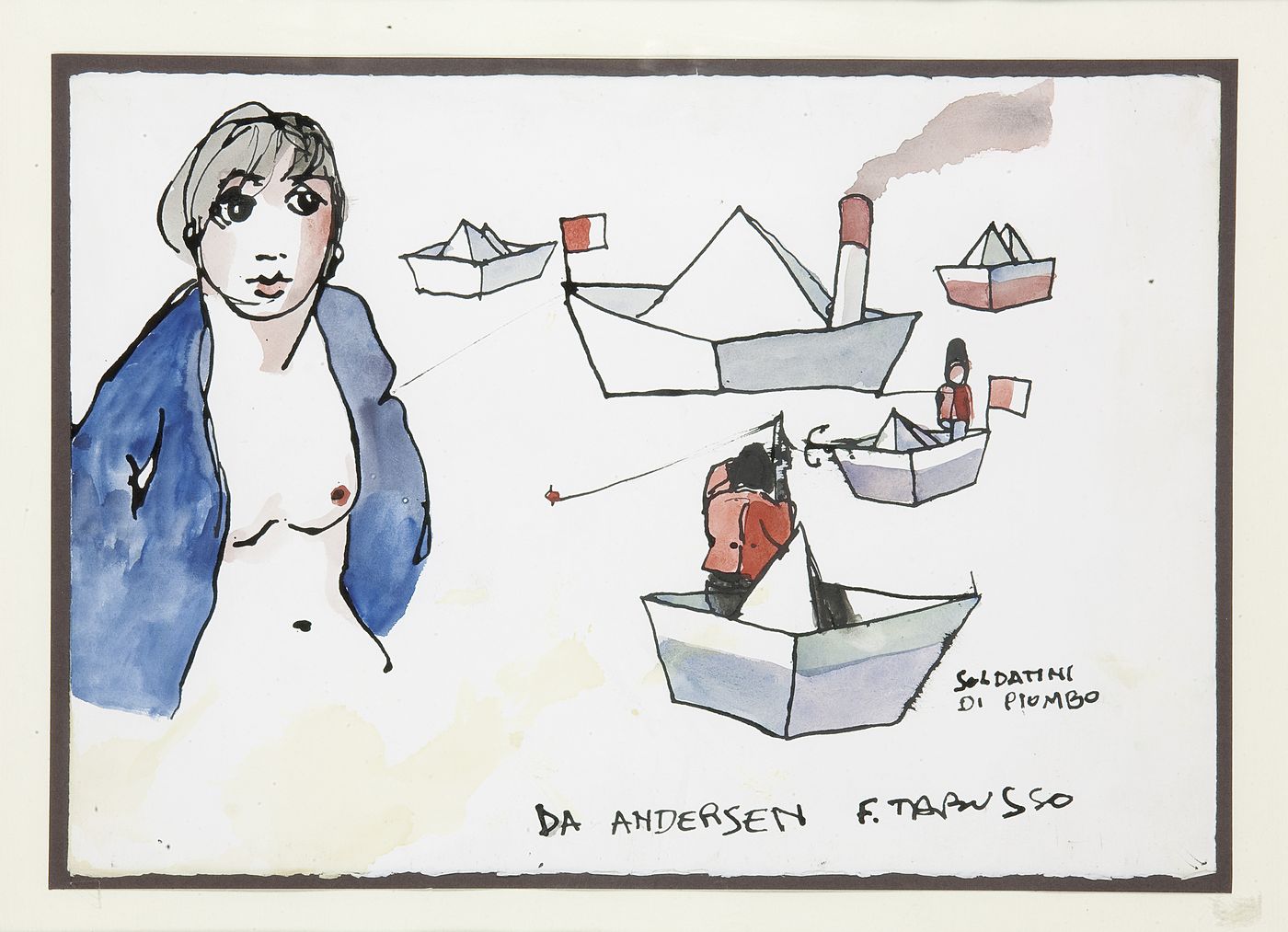 TABUSSO FRANCESCO Sesto San Giovanni (MI) 1930-2012 Torino "Soldatini di piombo" (da Andersen) 35x49,5 china e acquerello su carta Opera firmata ed intitolata in basso a destra
