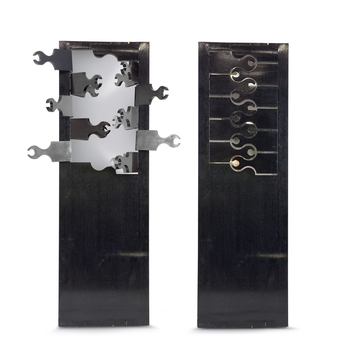 ANONIMA DESIGN (JARETTI, LUZI, PRANDI, RICCATO,VIRANO) – Scorpion, Appendiabiti in legno multistrato con specchio. Prod. Bonetto 1972. cm. 187x60. Bibl.: "Design per Abitare arredi di architetti torinesi", (catalogo della mostra), maneggio Chiablese della Cavallerizza Reale, ottobre 2008, Design diffusion edizioni, 2008, pag. 41.