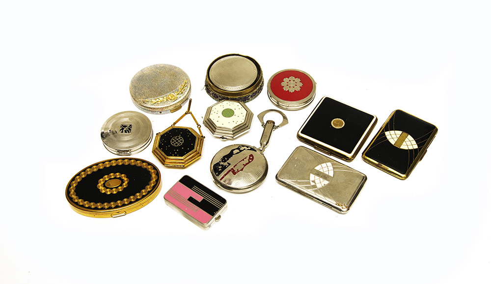 RICHARD HUDNUT Lotto di dodici tra vanity cases e portacipria tra i quali due Du Barry, due Deauville e due le DÈbut forme, dimensioni e materiali differenti alcuni rifinite con smalti (difetti) RICHARD HUDNUT Lotto di dodici tra vanity cases e portacipria tra i quali due Du Barry, due Deauville e due Le DÈbut forme, dimensioni e materiali differenti alcuni rifinite con smalti (difetti) Lot comprising twelve compacts of which two Du Barry, two Deauville and two Le DÈbut (defects)