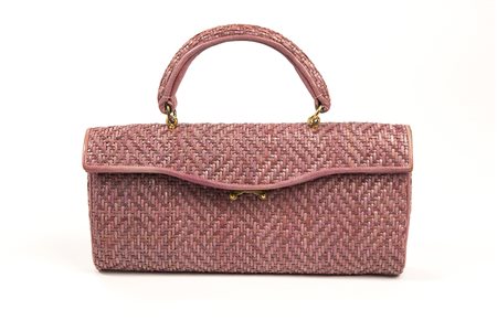ROBERTA DI CAMERINO Borsetta ad un manico in pelle intrecciata sui toni del rosa, rifiniture color oro (cm 28) (livi difetti)
