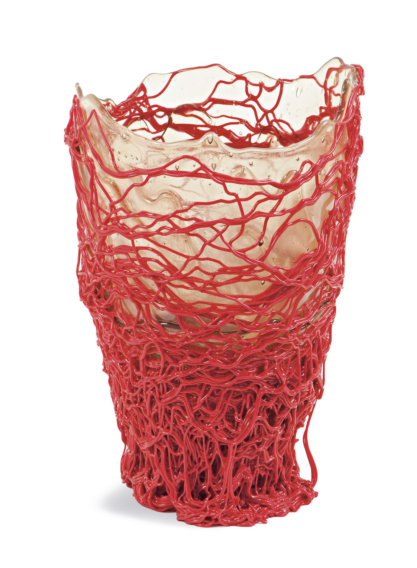 PESCE GAETANO - Spaghetti L rosso e trasparente. Vaso in resina siliconica...