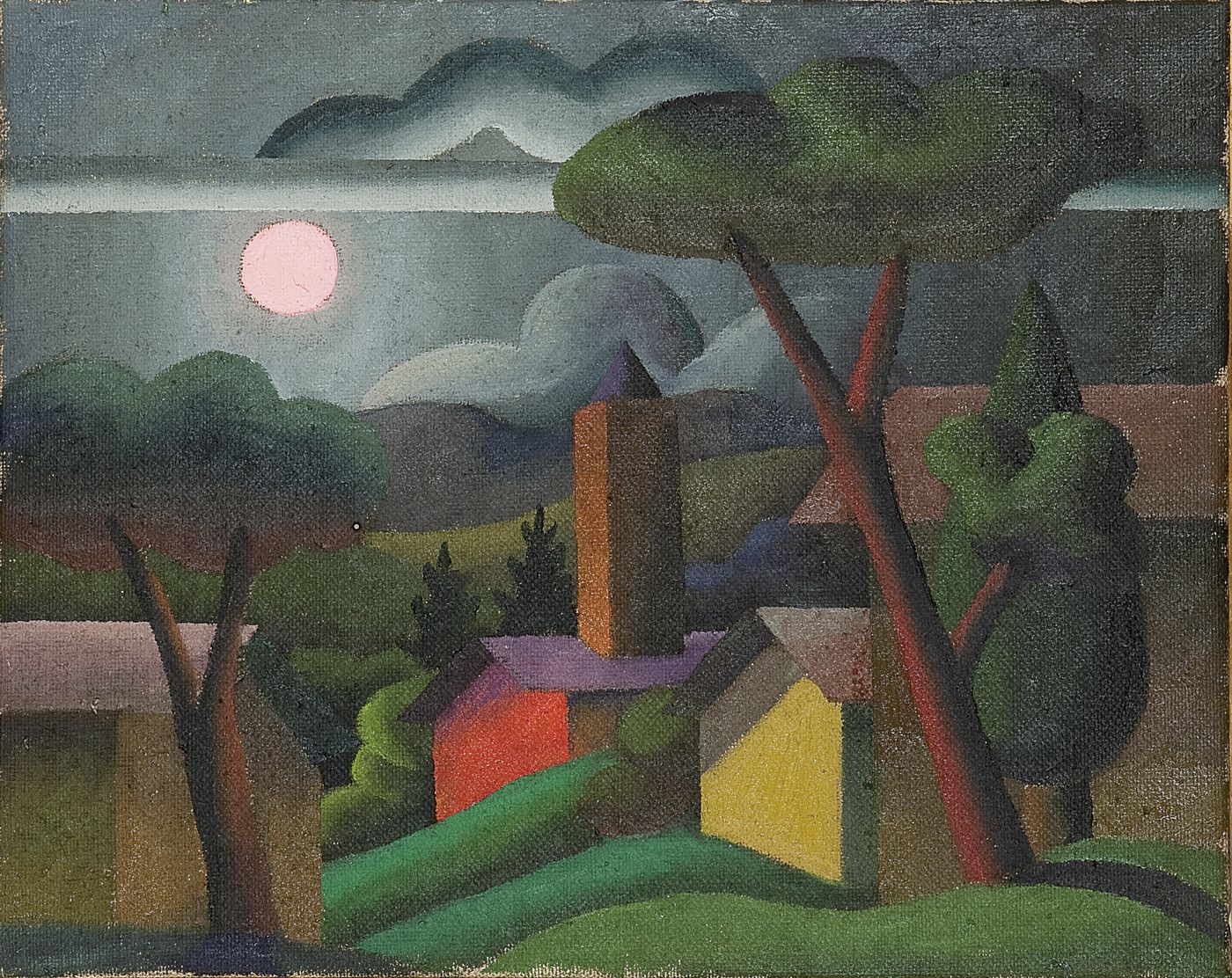 SALVO Leonforte (EN) 1947 "Luna rossa" 40x50 olio su tela Opera firmata ed intitolata al retro Autentica dell'artista su fotografia
