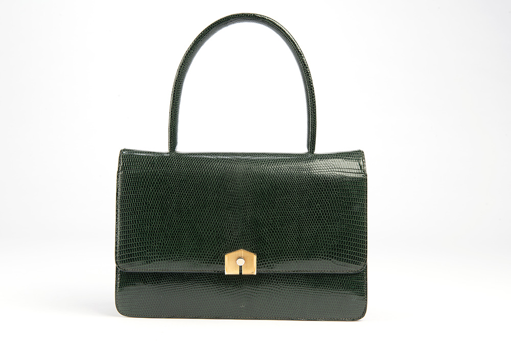 Borsa a braccio in lucertola verde bottiglia (segni d'aso)