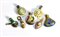 Lotto di sette piccoli porta profumo a pendente in ceramica e porcellana a decori differenti, secolo XIX