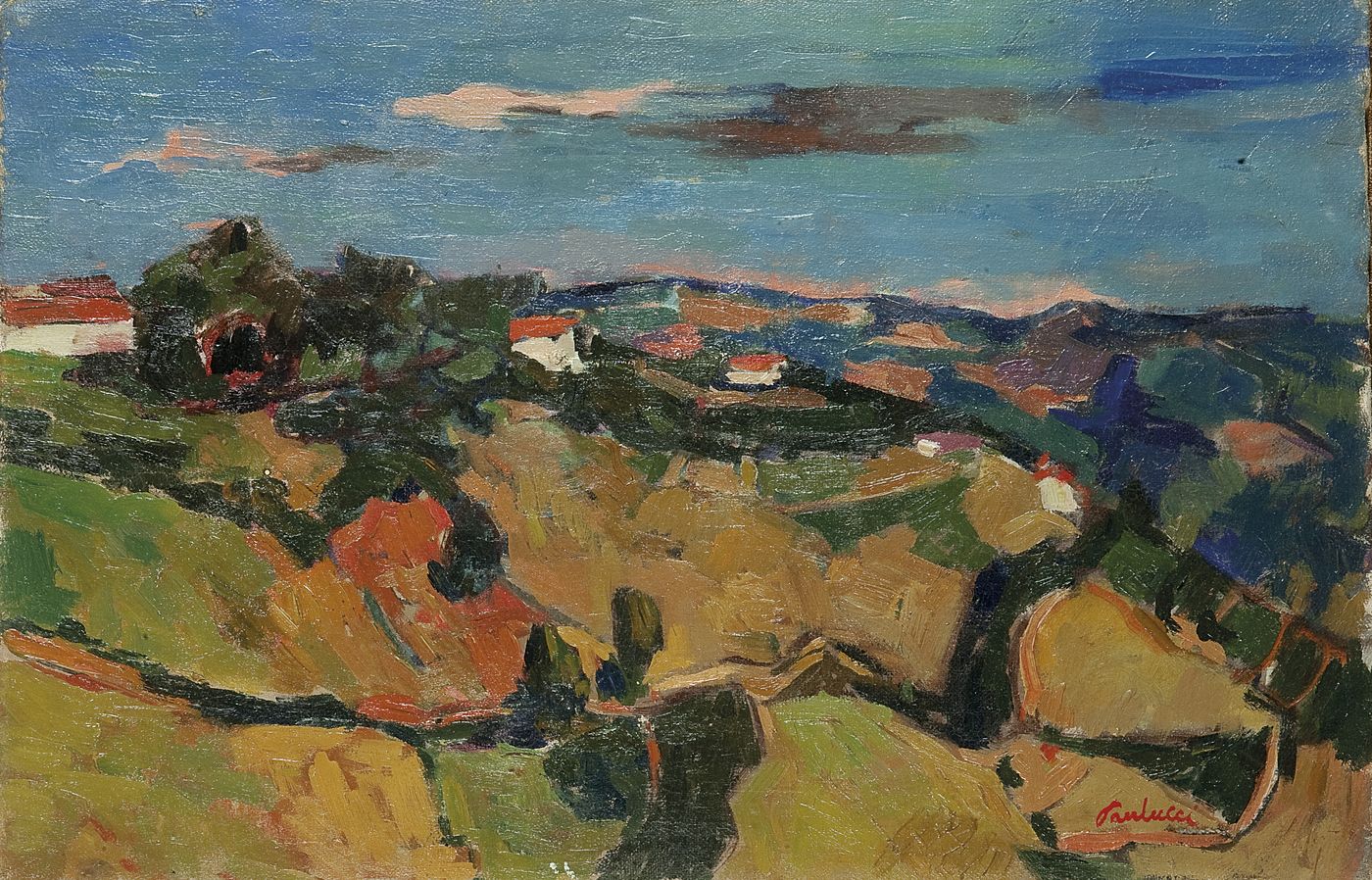 PAULUCCI ENRICO Genova 1901 - 1999 Torino "Langa" 1938 36x55 olio su tela Opera firmata in basso a destra