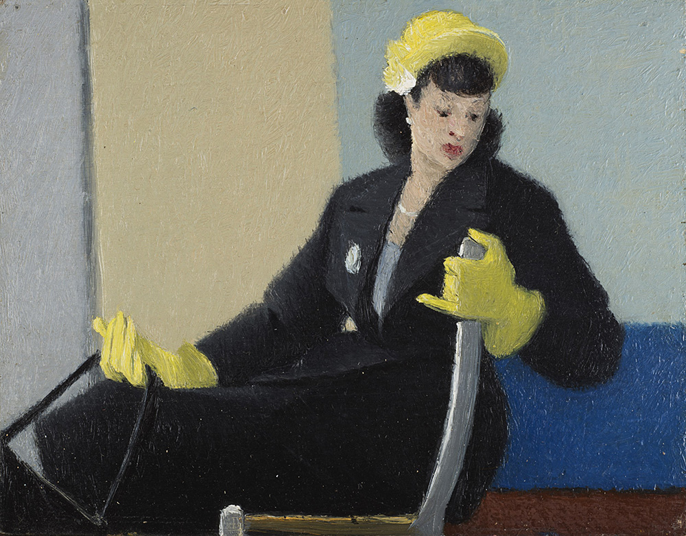 Antonio Calderara (Abbiategrasso 1903 - Vaciago 1978) "Figura di donna in guanti gialli" 1951