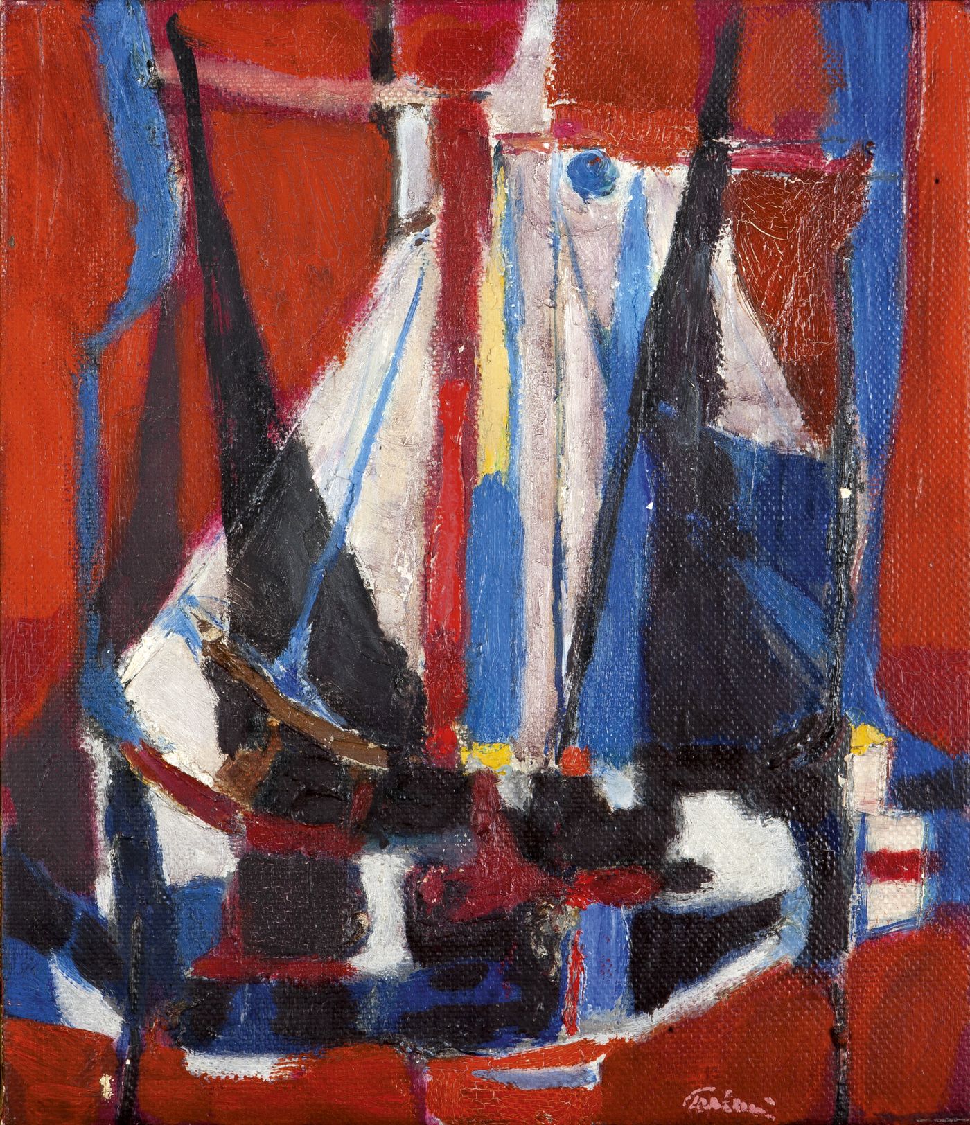 PAULUCCI ENRICO Genova 1901 - 1999 Torino "Vele" anni '60 35x30 olio su tela Opera firmata in basso a destra