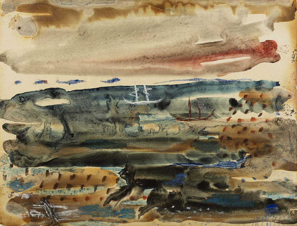 tempera, pastello e bruciatura su carta, cm 24,5x32