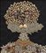 assemblage di conchiglie, bottoni, medaglie, bussole su seta applicata su tavola, cm 80x70