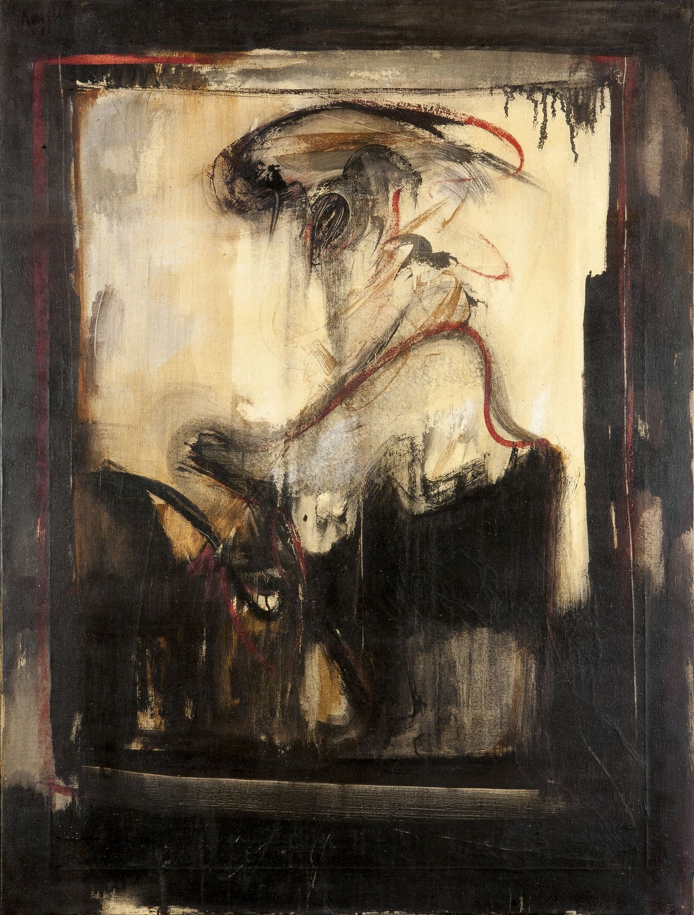 RUGGERI PIERO Torino 1930 - 2009 "Autoritratto vestito da principe" 1960 100x75 olio su tela Opera firmata in alto a sinistra e al retro Opera registrata presso l'archivio Piero Ruggeri in data 8 dicembre 2011 con il n. 265