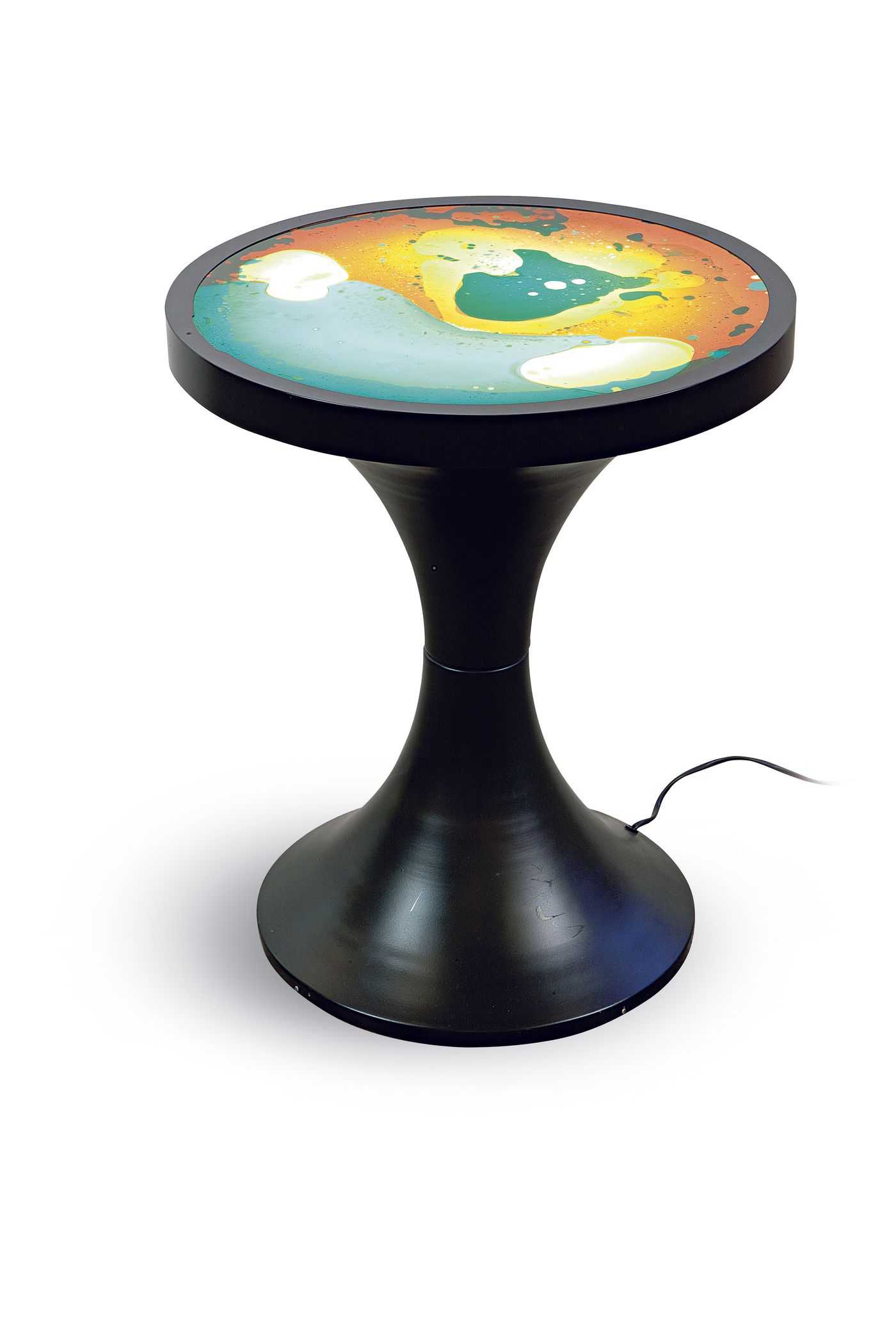 CONTENOTTE BRUNO - Tavolo luminoso con piano formato da membrane contenenti liquidi colorati. Firmato sul piano Contenotte 1975. Diam. cm. 55