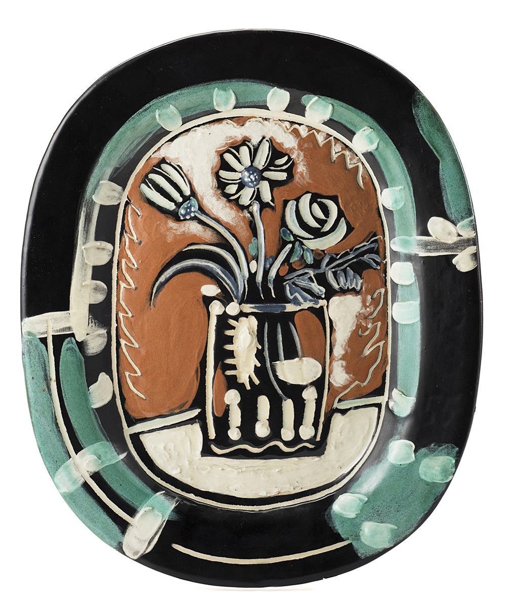 Pablo Picasso (Malaga 1881 - Mougins 1973) "Bouquet" 1955 piatto in...
