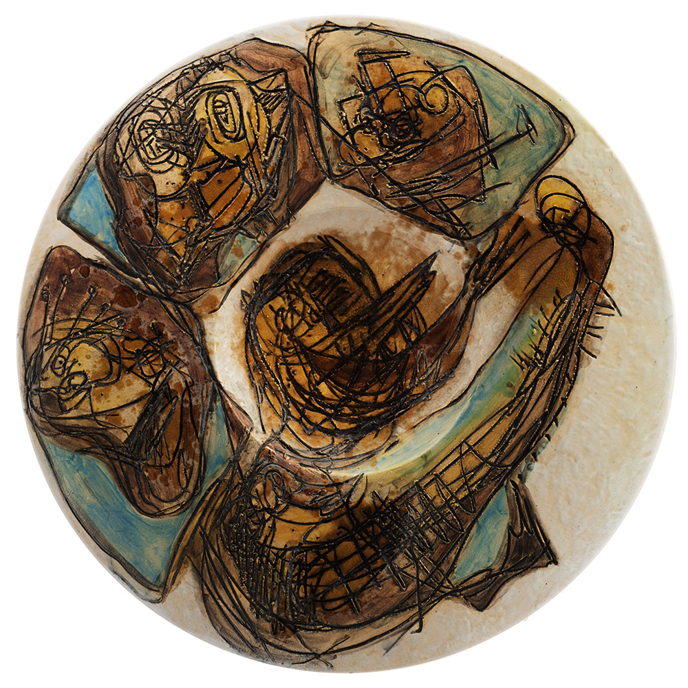 Asger Jorn (Vejrum 1914 - 1973) "Senza titolo" 1954 piatto in...