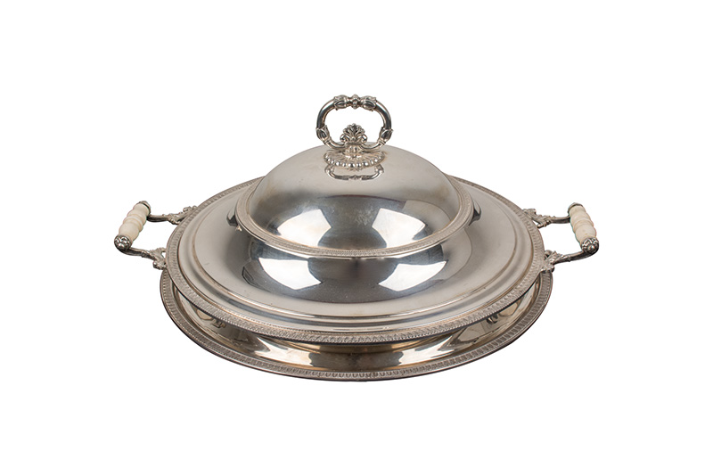 Legumiera con coperchio e piatto impero Manici avorio.Arg 800/°°° gr. 2.800