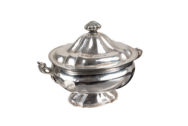 Zuppiera martellata con coperchio .Arg 800/°°° gr. 1.770