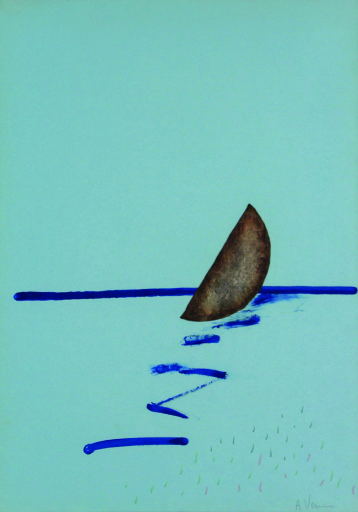 Arturo Vermi, Luna, 1976/1977, tempera, pennarello e foglia argento su...