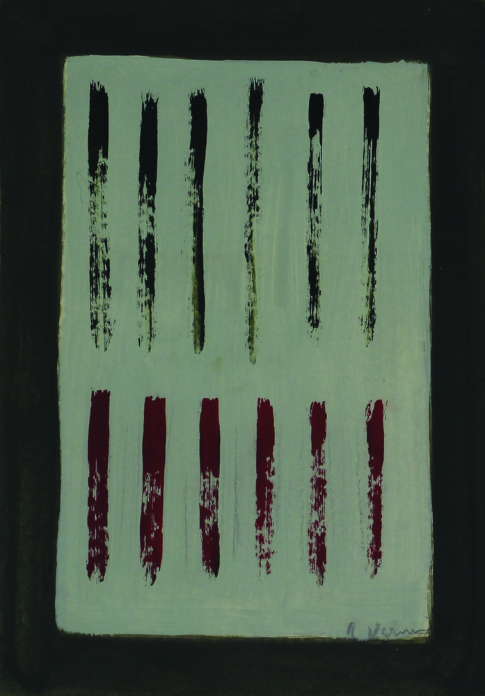 Arturo Vermi, Diario, 1963, tempera su carta intelata, cm. 32,3x22,8, firmata...