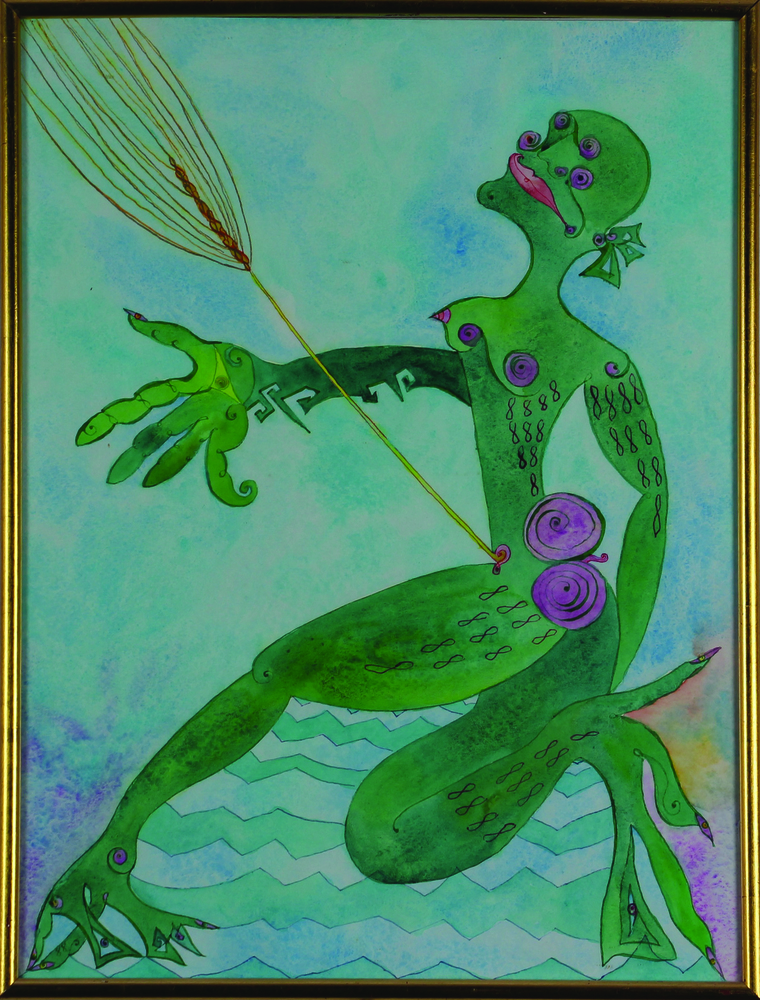 Luigi Ontani, Rana Grano, 1998, china acquarello su carta, cm. 48x36, firmata, intitolata e datata al retro, certificato di autenticità dell'artista su fotografia, provenienza Galleria Astuni di Fano