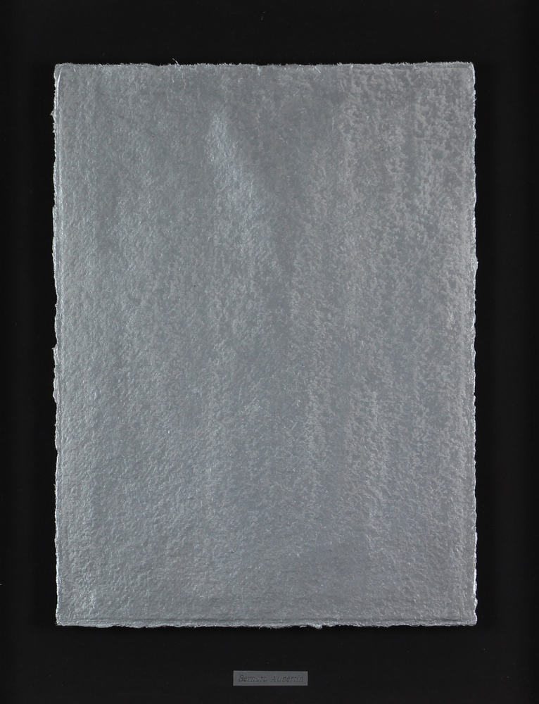 Bernard Aubertin, Monochrome Argent, 2008, acrilico spatolato su cartone, cm. 38x29, certificato di archiviazione dell'Archivio Opere Bernard Aubertin e fotografia firmata dall'artista