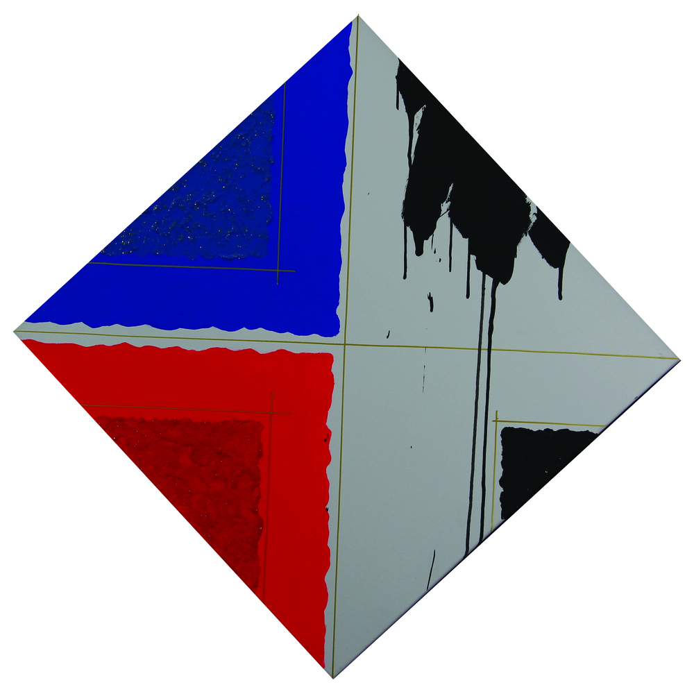 Ennio Finzi, Il Colore Ritrovato, 2014, acrilico e materie su tela, cm. 84x84 in diagonale, firmato, intitolato e datato al retro, certificato di autenticità dell'artista su fotografia