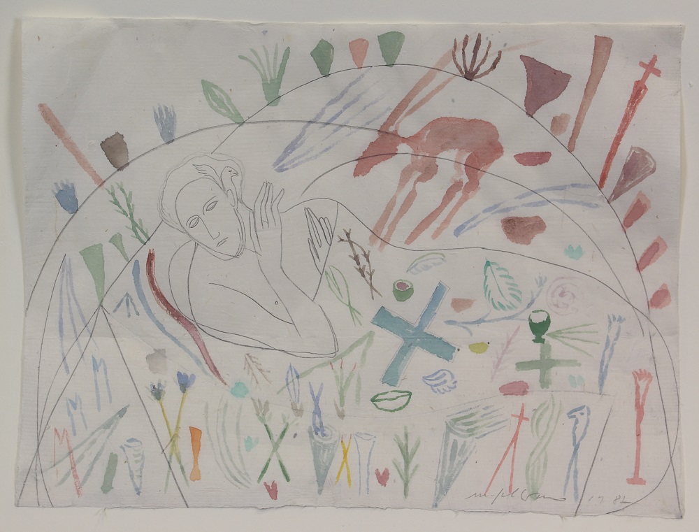Mimmo Paladino, Senza titolo, 1987, tecnica mista su carta di riso, cm. 32x43, firmata e datata in basso a destra, certificato di autenticità dell'artista su fotografia, senza cornice