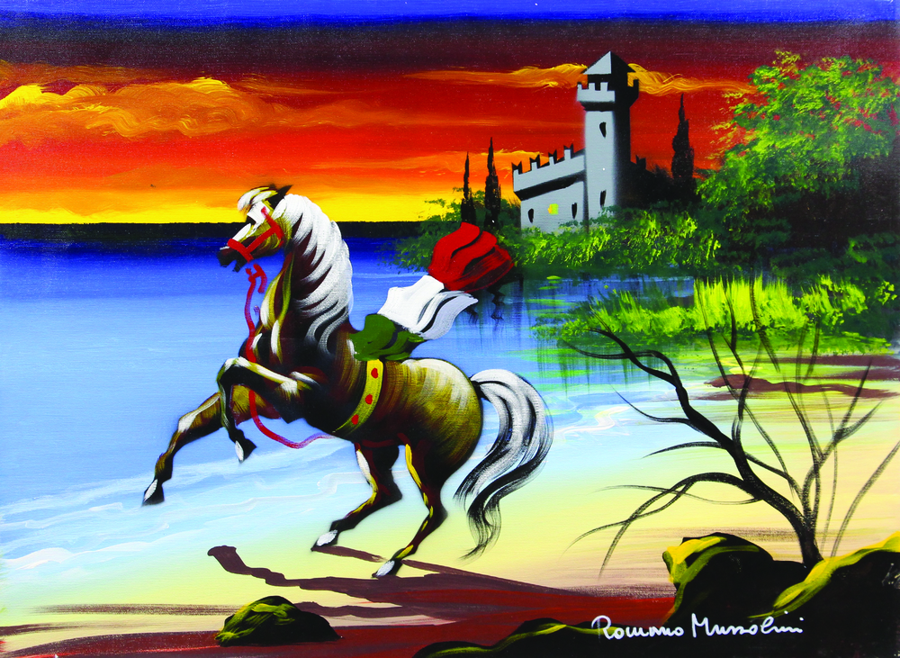 Romano Mussolini, Cavallo sul Mare, acrilico su tela, cm 60x80, firmato in...